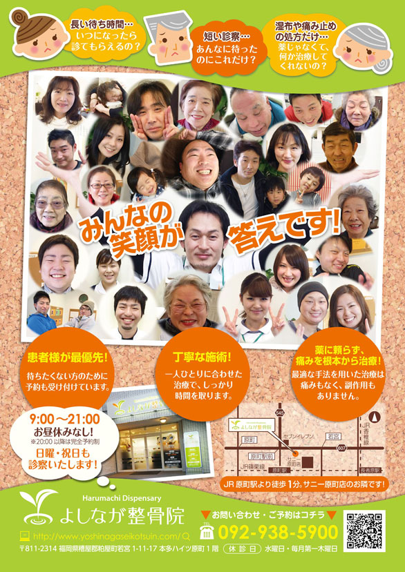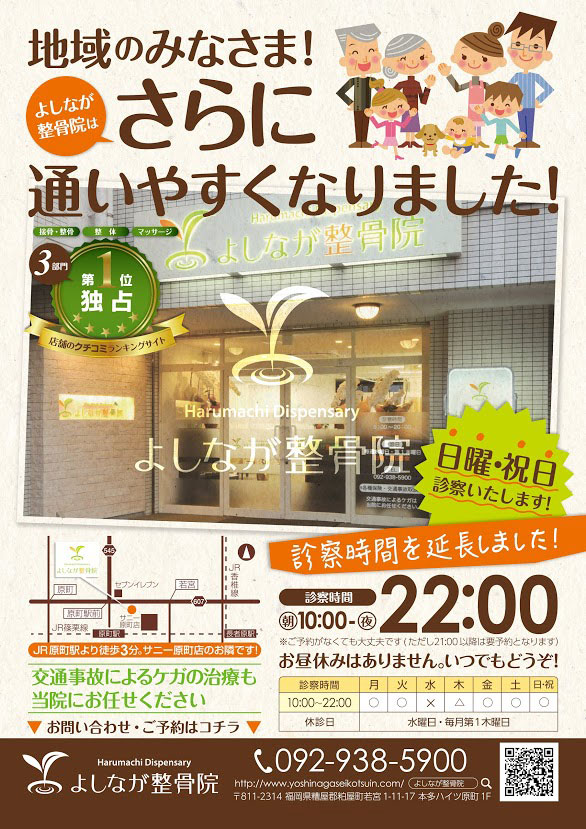 よしなが整骨院・鍼灸院は福岡県の糟屋郡粕屋町で2012年に開院した